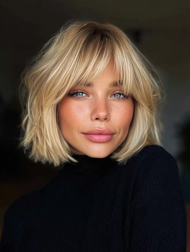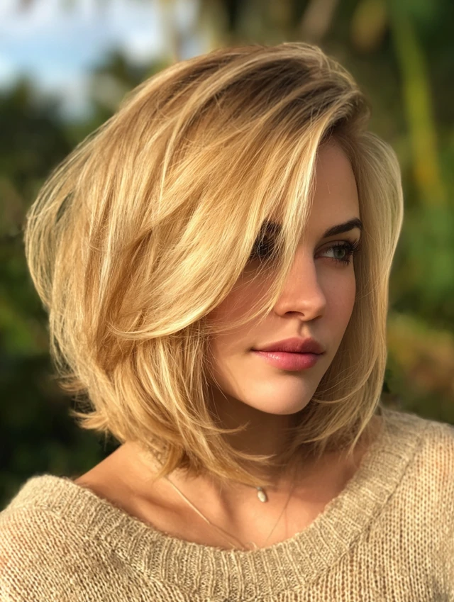 Blonde reflects light more than darker shades. That shine makes the bob’s shape more visible. Clean lines appear sharper. Layers show more clearly. Every detail stands out.