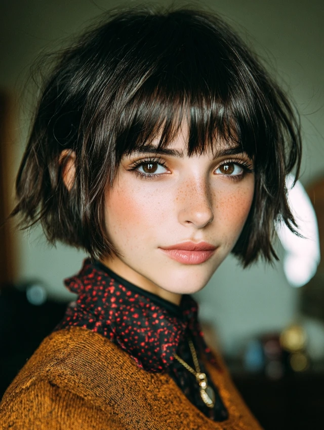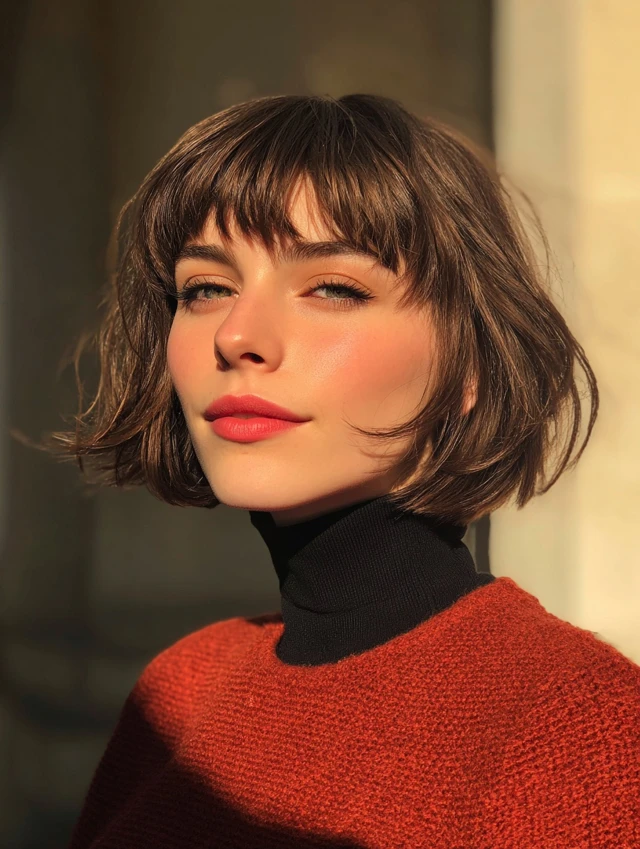 A French bob with short bangs sits above the jaw and feels chic. This style suits petite and oval face shapes. The shorter fringe adds personality and draws attention to the eyes.
