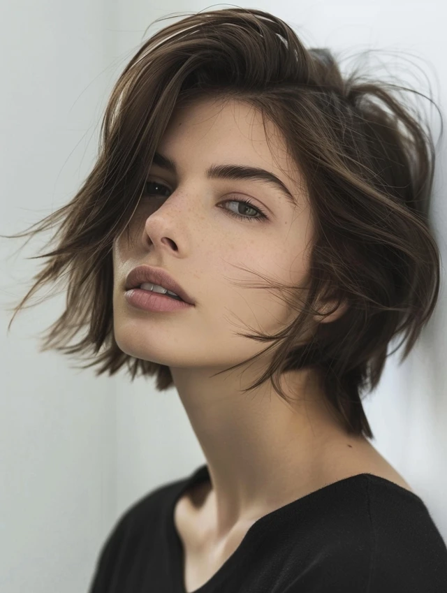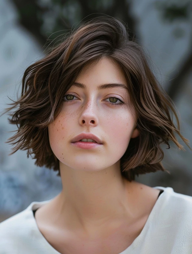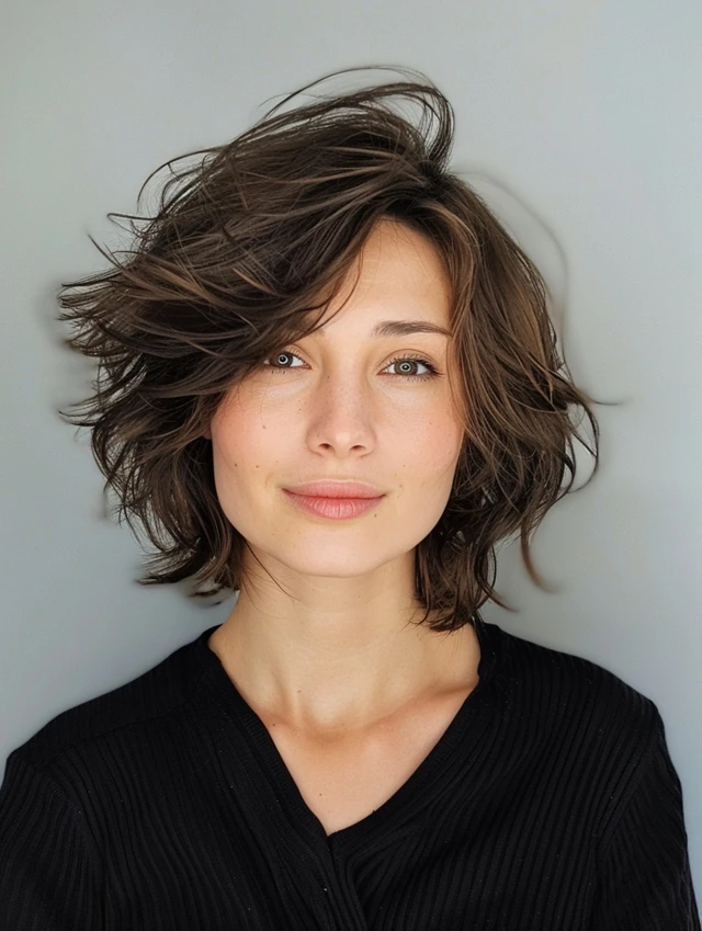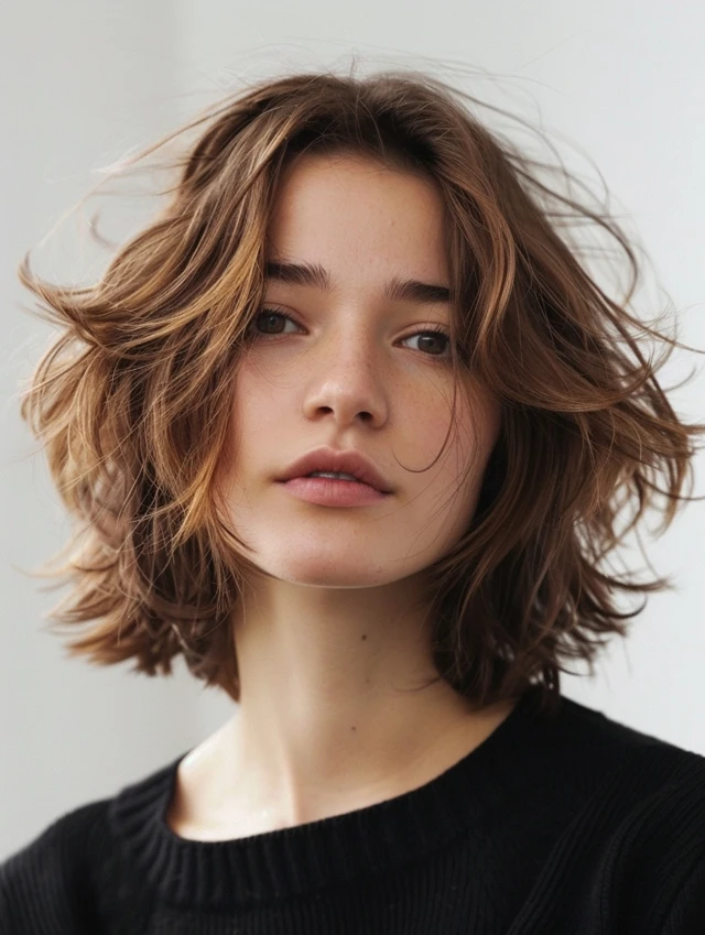A classic choppy bob features uneven layers that add volume and texture while framing the face. Oval, round, and heart-shaped faces benefit most. Fine hair gains thickness, and medium textures show natural movement.
