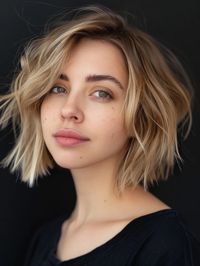 Layered choppy bobs combine stacked or layered cuts with uneven ends for a fuller, voluminous look. Oval and round faces benefit, and fine hair appears thicker and more dynamic.