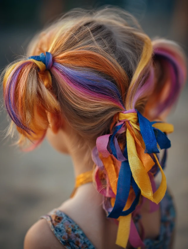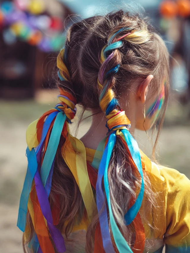 Curl the ends slightly and tie with bold ribbons. Add temporary color for extra impact. This look works for themed parties and children’s events. Styling stays simple and fun.