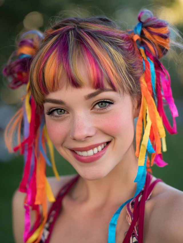 Apply color-safe spray or extensions to create the rainbow effect. Keep curls moisturized to maintain bounce. This look works for festivals and parades. It makes a bold statement with minimal shaping.