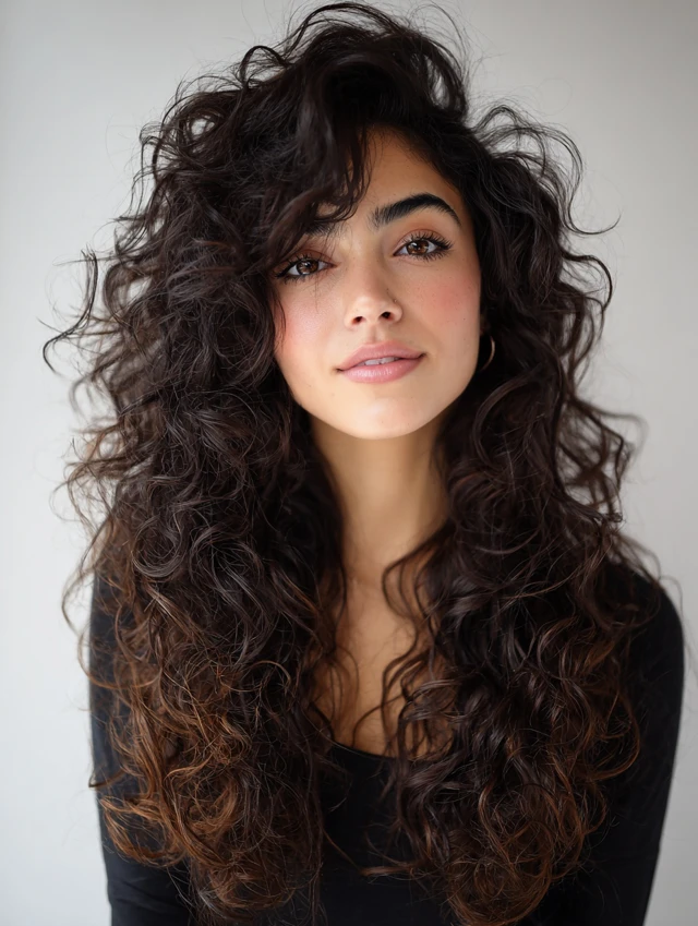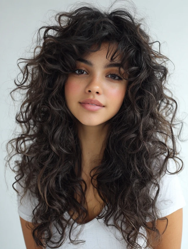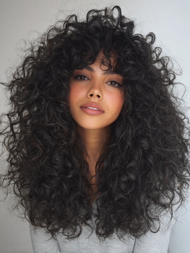 This cut embraces natural curls with soft, feathered layers. Crown layers lift curls, while longer ends maintain bounce and shape. Oval and heart-shaped faces benefit from balanced volume.
