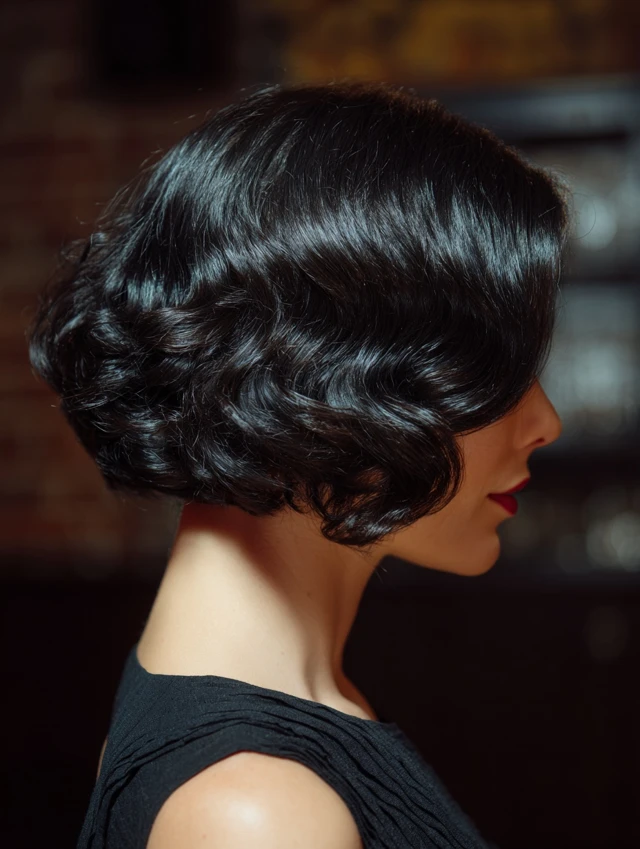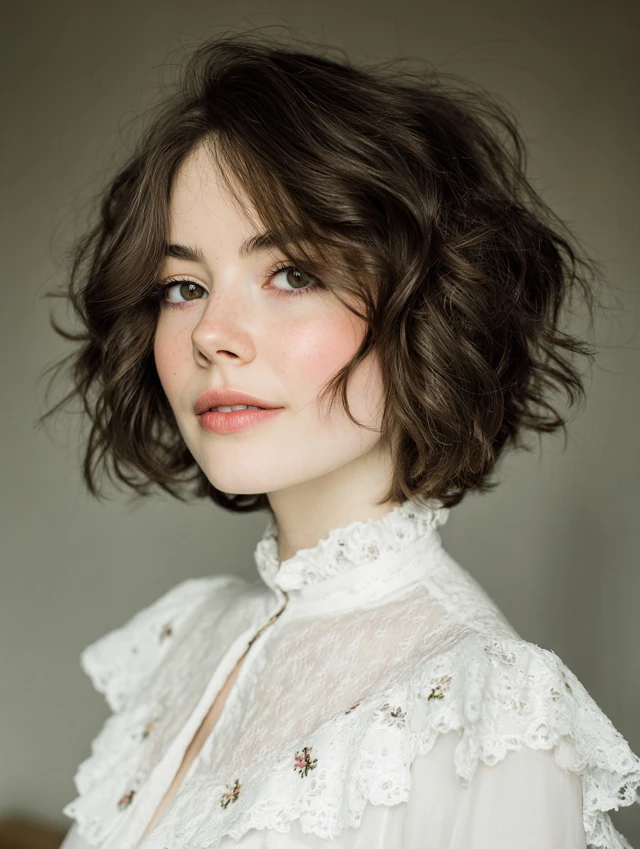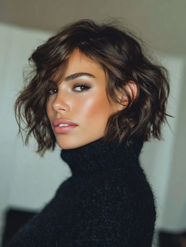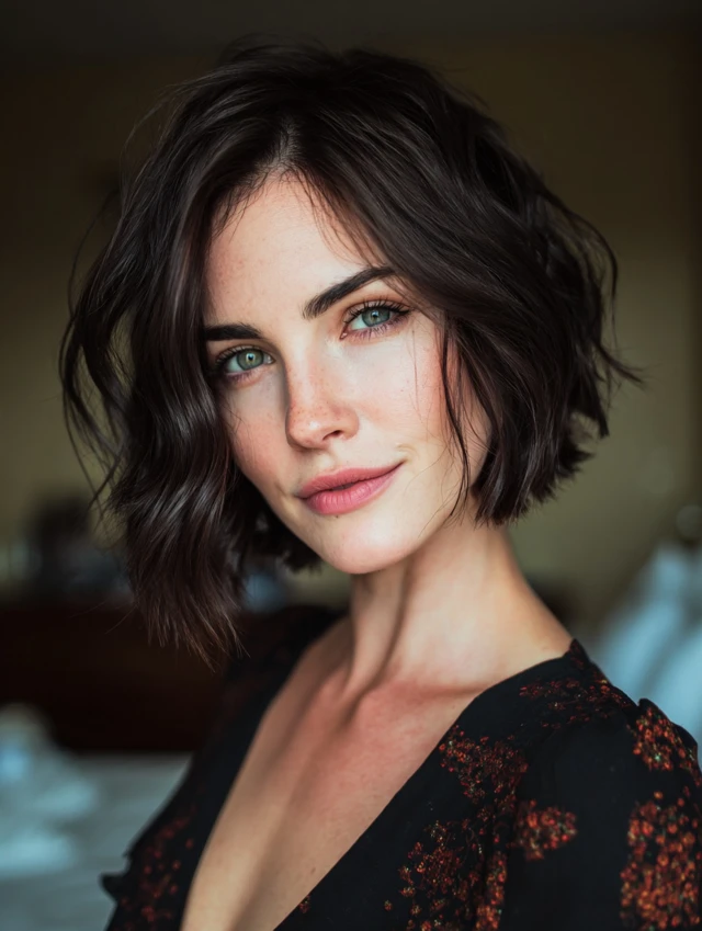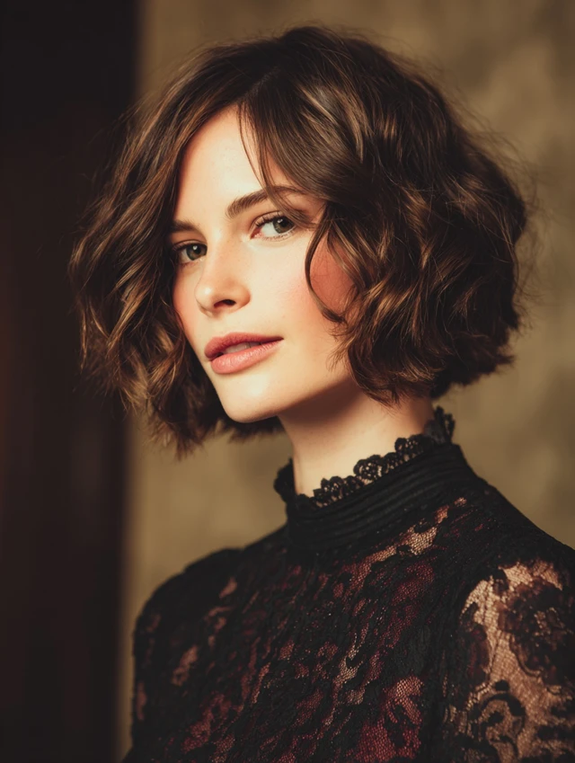 Loose waves add romance to a short bob. This style suits square and angular faces by softening features. The waves create dimension without overpowering the cut.