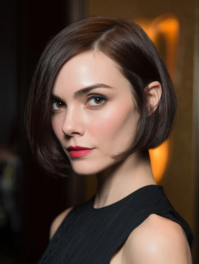 A sleek side part adds instant drama. This style suits round and heart-shaped faces by creating vertical lines. A chin-length bob works best for this look.