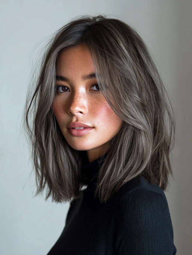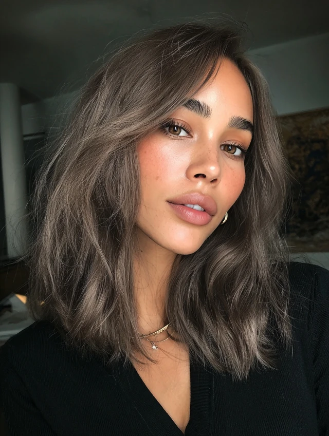 Ash brown creates cool contrast. It suits cool undertones and angular face shapes. The muted tone feels modern and refined.