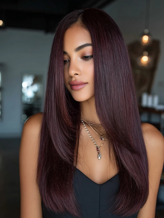 This color works well for fall and winter. It requires color-safe products to maintain vibrancy. The result feels dramatic yet refined.