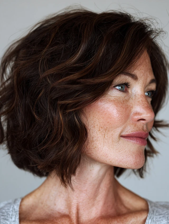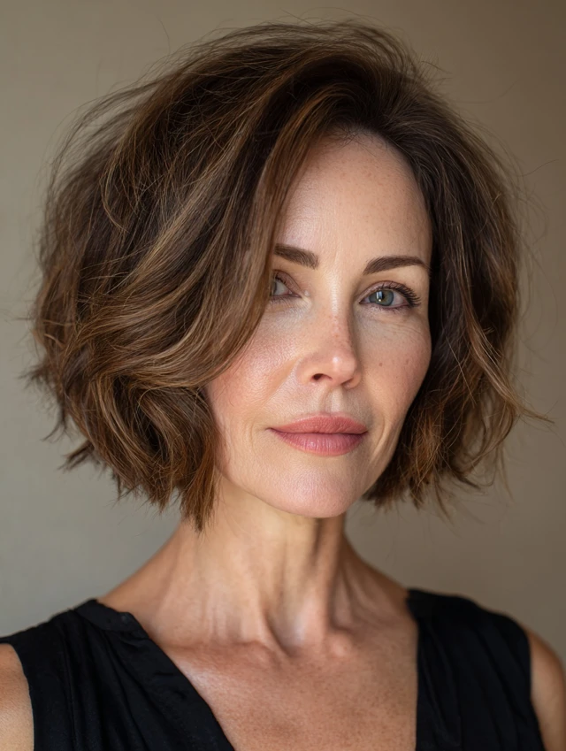 Which hairstyle do you feel would best soften your jawline—layered shoulder-length, soft wavy bob, or side-parted pixie? Share your favorite in the comments to inspire other women over 40 seeking flattering, effortless hairstyles.