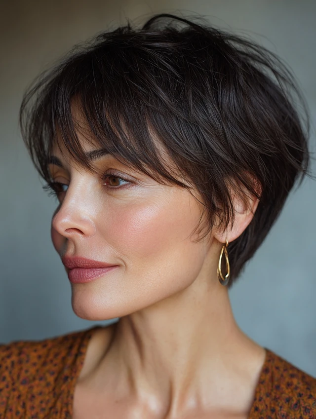 Quick styling with texturizing cream enhances layers and movement. The pixie is chic, flattering, and perfect for busy mornings or active lifestyles.