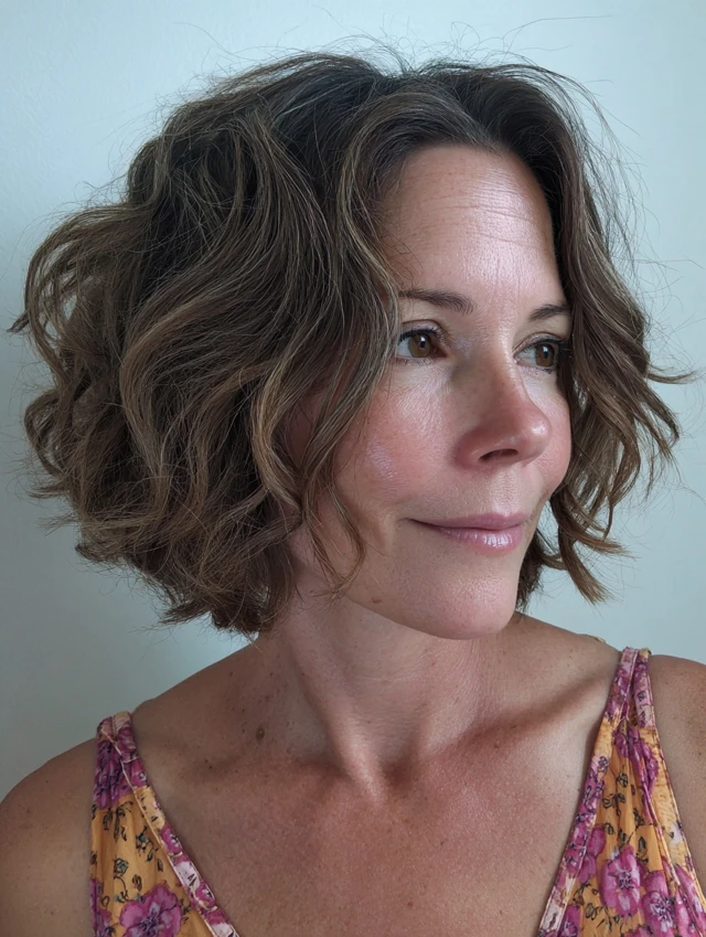 A wavy bob adds softness and horizontal movement that balances a square face. Medium to thick hair holds waves naturally, while fine hair benefits from curl-enhancing cream or sea salt spray.