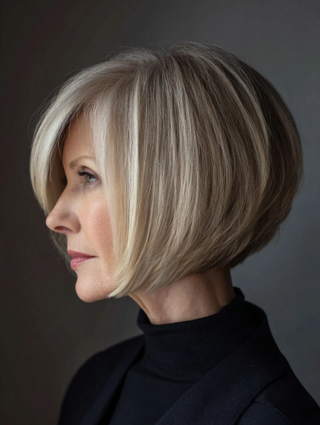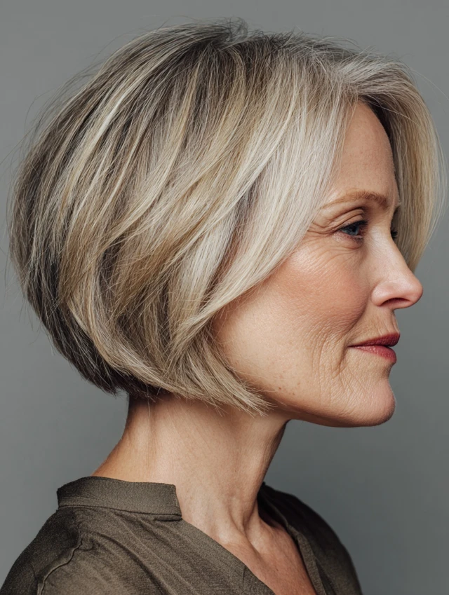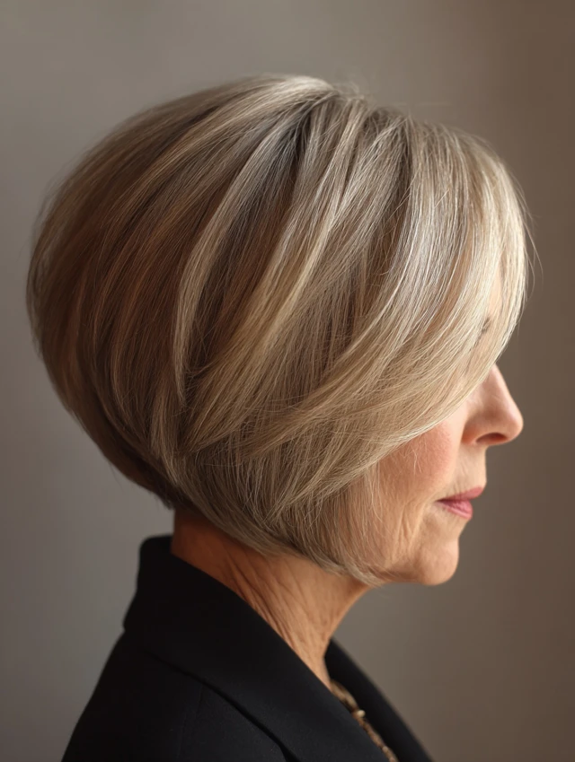 A stacked bob builds volume at the back with shorter layers while keeping length in front. This structure lifts thinning hair and creates a fuller silhouette. It works best for fine to medium hair and flat crowns.