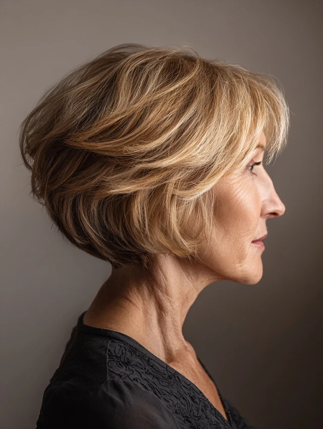 Styling takes little effort. The shape holds naturally, even when air-dried. This cut is ideal for older women who want visible volume without daily styling time.