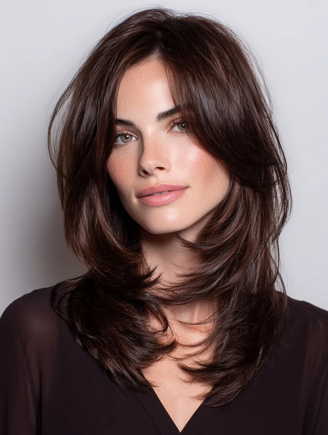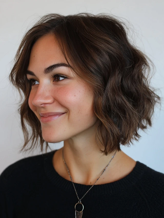 This version enhances natural waves. Layers are longer at the back and slightly shorter near the face. It suits oval and heart-shaped faces, and wavy or curly textures look lively. The cut softens strong features and adds playful bounce.