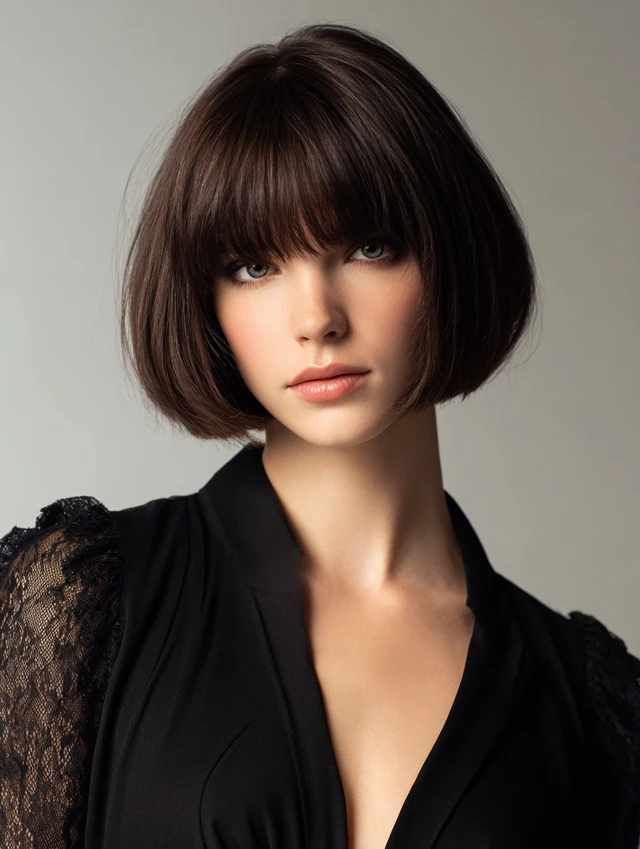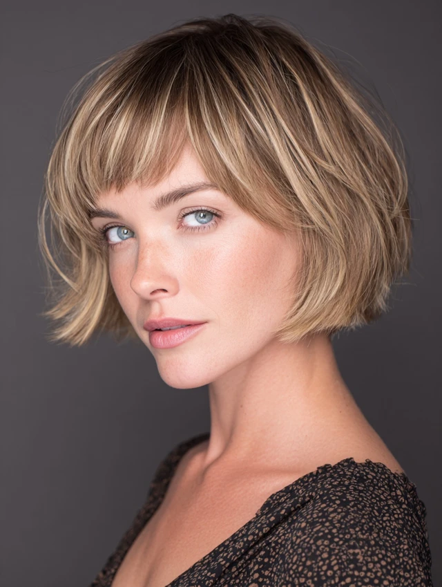 This style keeps a rounded bob shape with soft, face-framing fringe. It works well for oval, heart, and square face shapes. Layers are subtle, adding movement without sacrificing shape. Fine to medium hair responds best, giving the cut a light, airy feel.