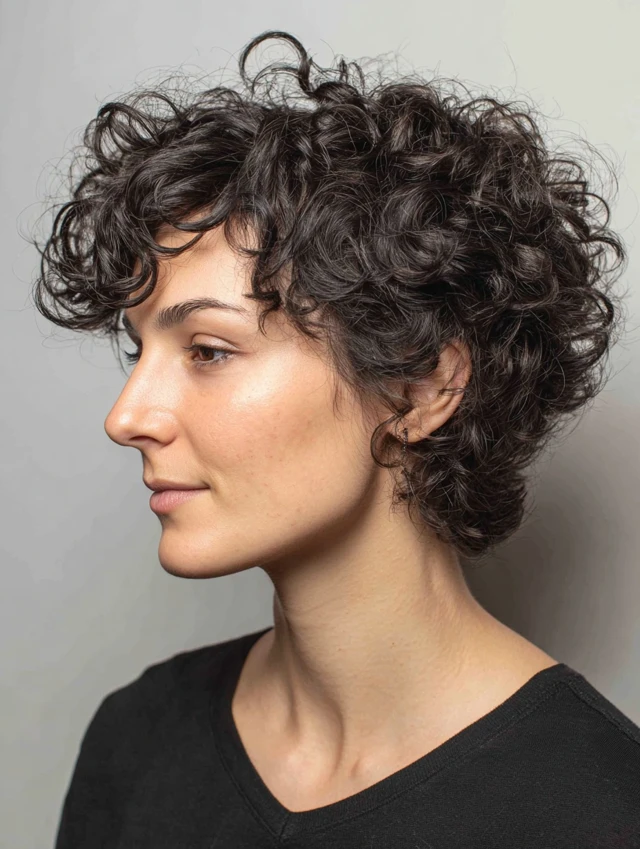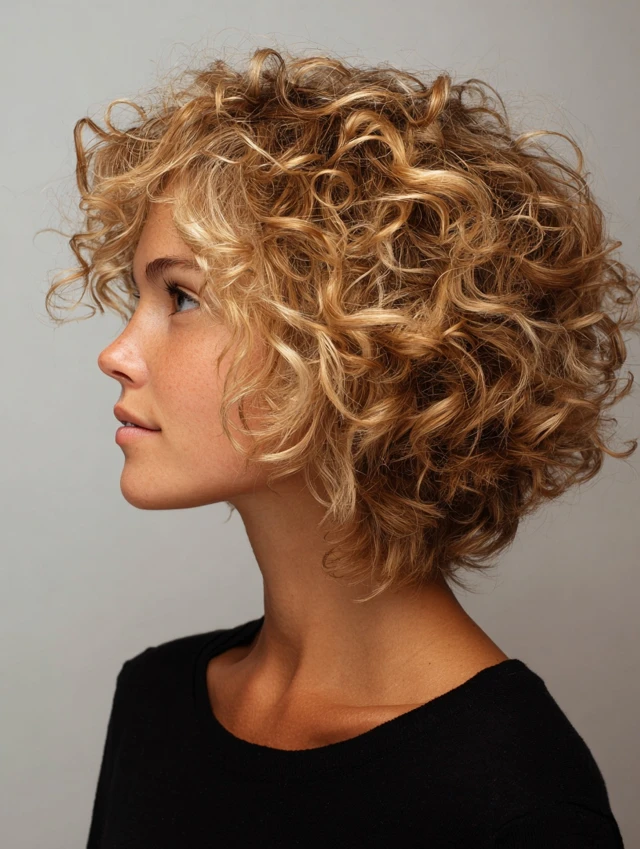 Styling centers on moisture and curl definition. Use curl cream or light gel, diffuse or air-dry. This style suits low-heat routines and active lifestyles. Regular shaping trims keep the cut bouncy and lively.