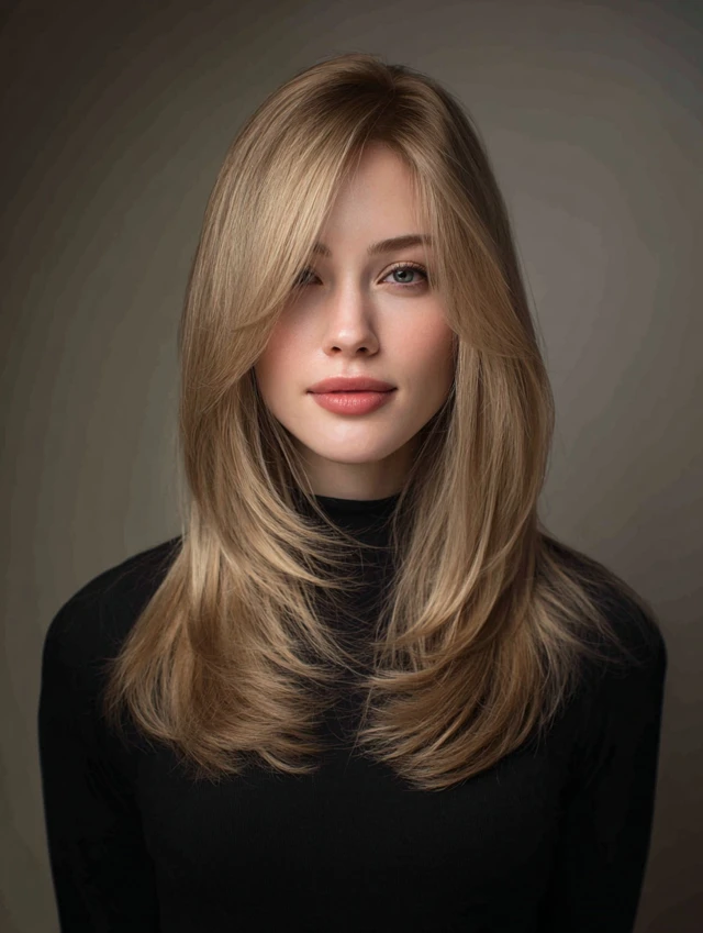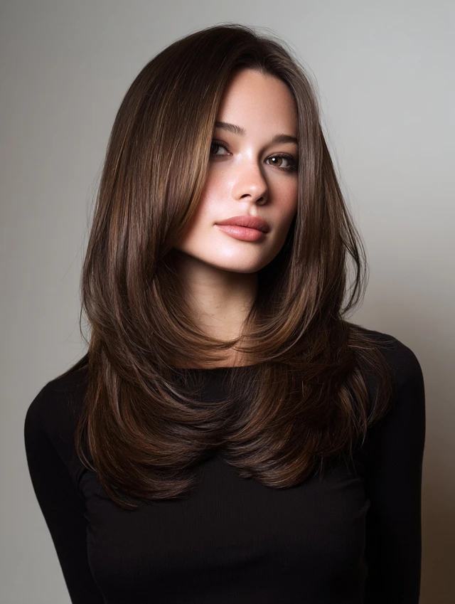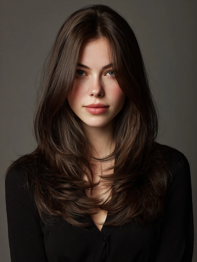 This cut keeps hair long with subtle layers starting near the face and cascading down. It works for oval, heart, and square faces, creating soft movement while framing facial features. Straight or wavy hair shows layers clearly and adds flow.