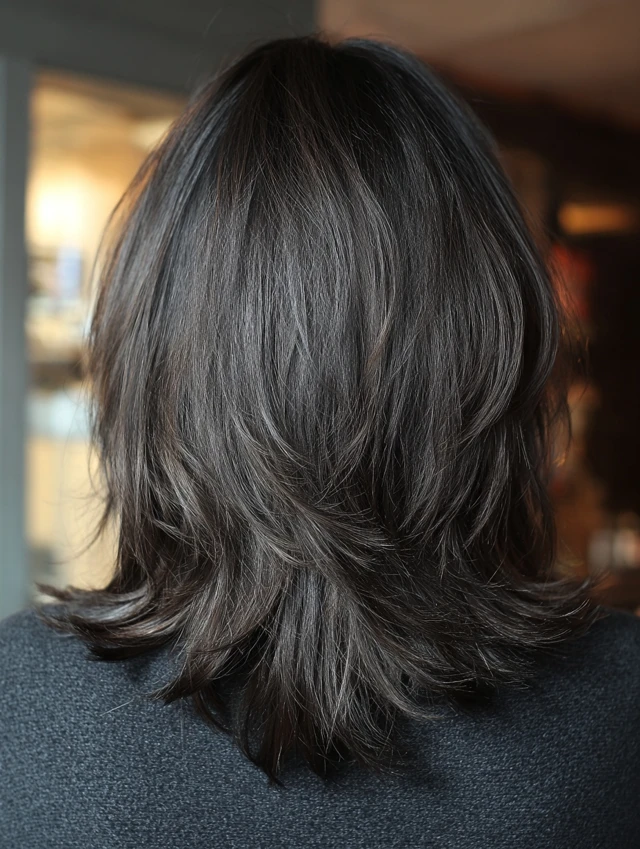 Light layers add movement without removing too much density. This style suits round and square faces because it softens edges. Fine hair gains natural lift at the crown. The key is subtle layering, not heavy texture.