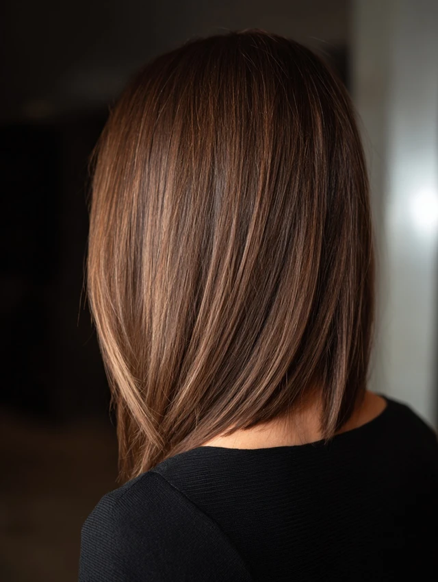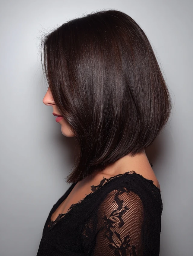 An A-line lob keeps the back slightly shorter and the front longer. This shape adds dimension and makes fine hair look thicker. It works well for round faces because the longer front pieces elongate the jawline.