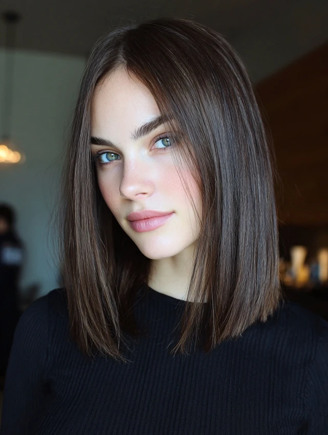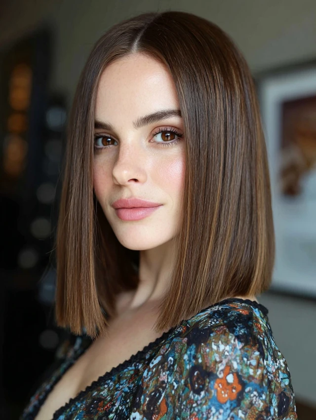 The blunt lob works well on oval and heart-shaped faces. A straight-across cut makes the ends look thicker instantly. Fine hair benefits from this solid shape because it avoids wispy layers that thin out the length. The clean line gives structure and balance.
