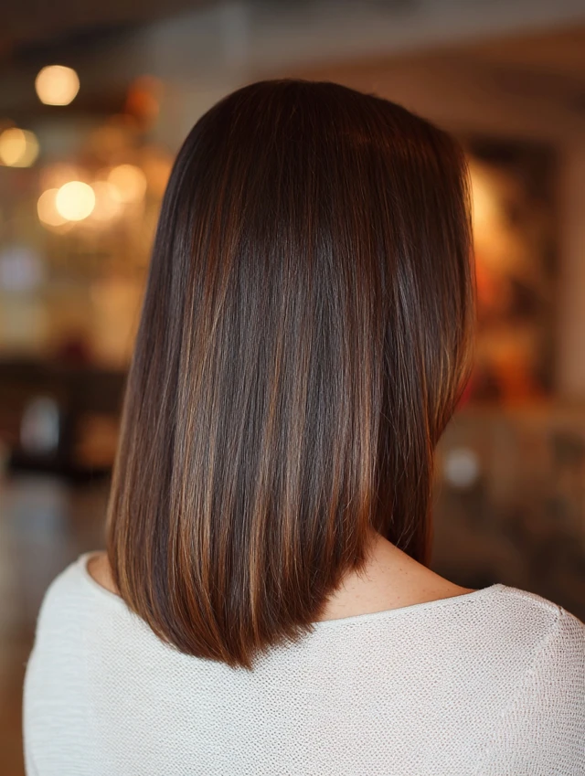 Flat iron the ends inward for a polished finish. Or add subtle bends for texture. This cut suits office environments and formal events. Regular trims maintain the sharp angle and clean structure.