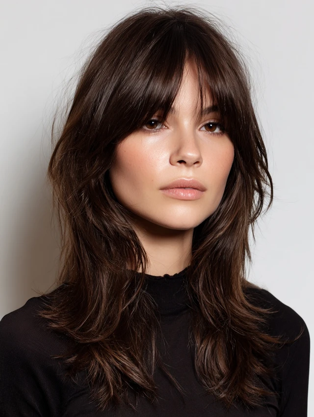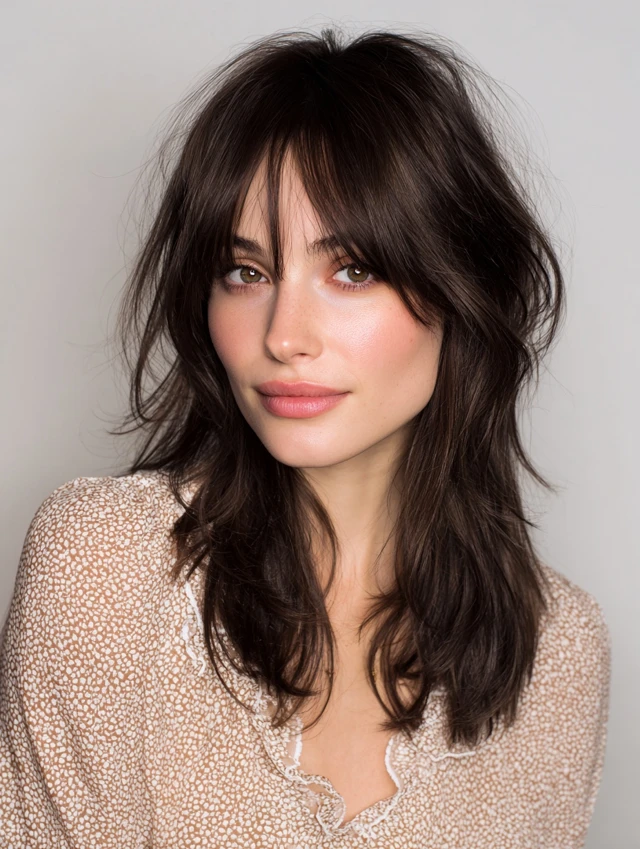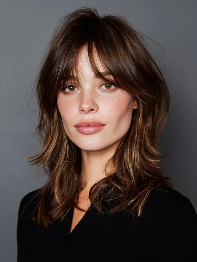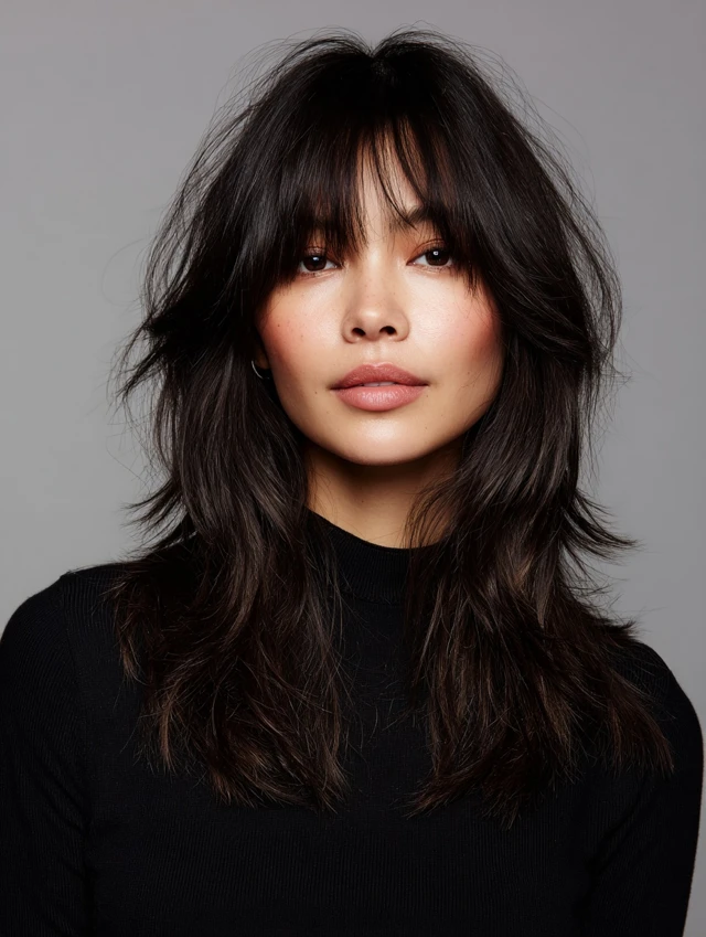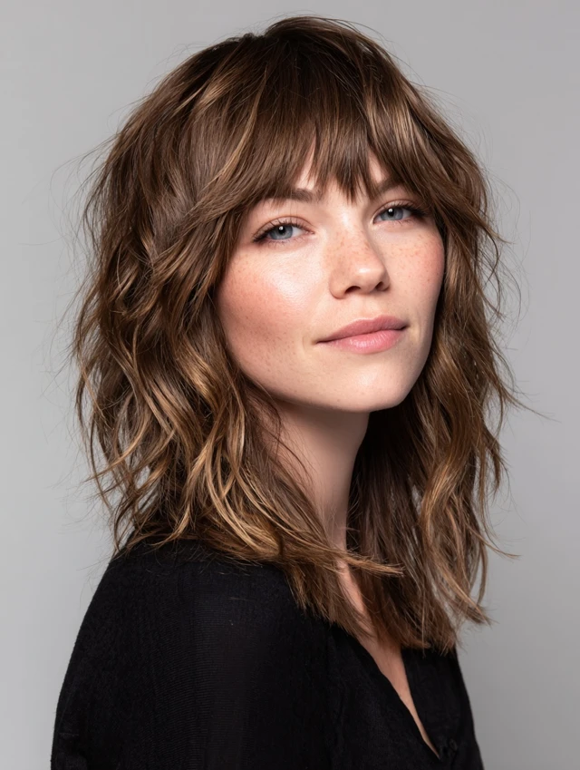 Layered Medium Shag with Curtain Bangs