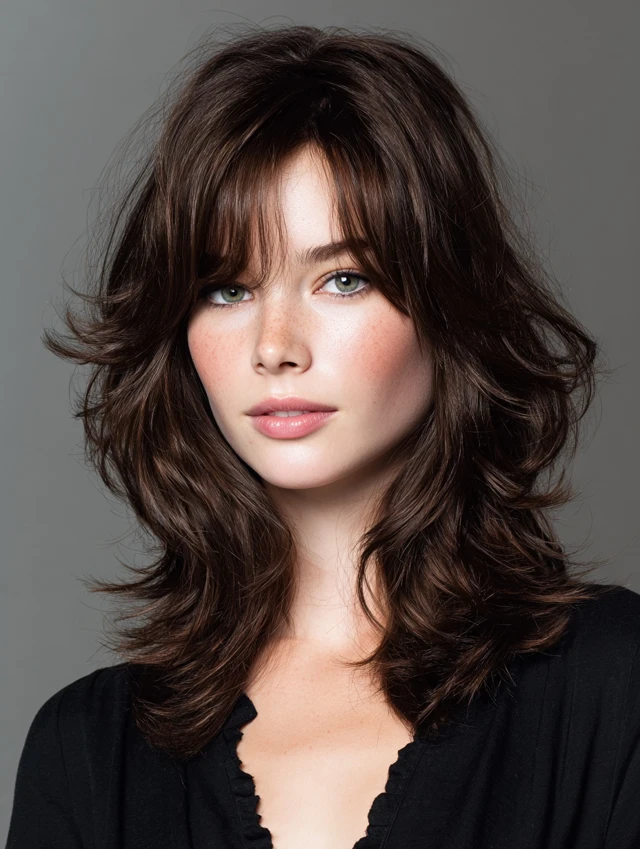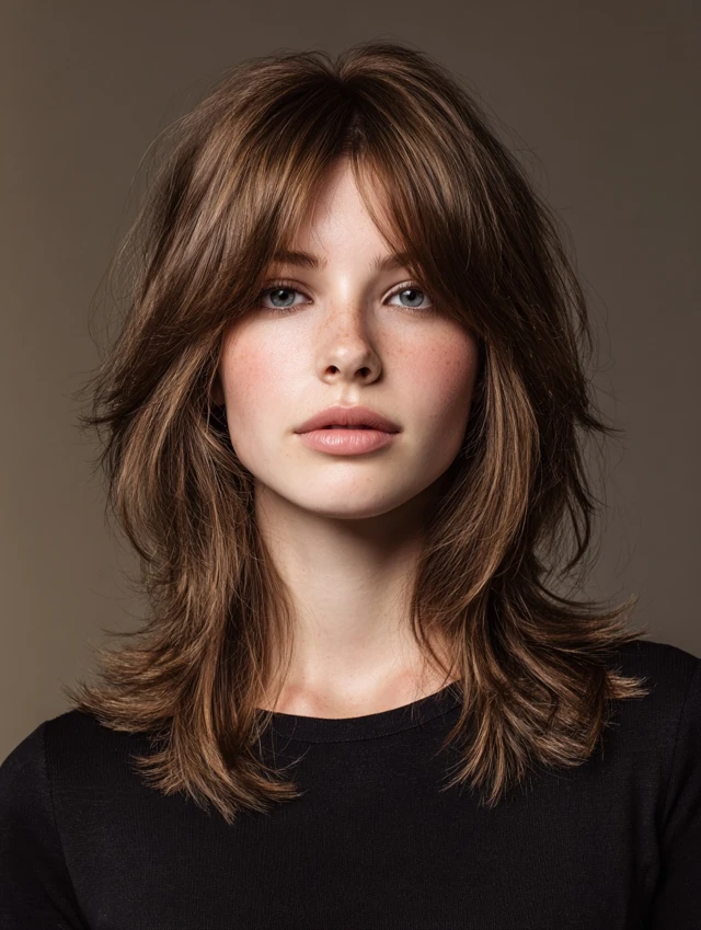 This style features shoulder-length layers with choppy crown sections and feathered ends. Works well on oval, heart, and square faces, giving volume and movement without heaviness. Straight or slightly wavy hair shows layers clearly.