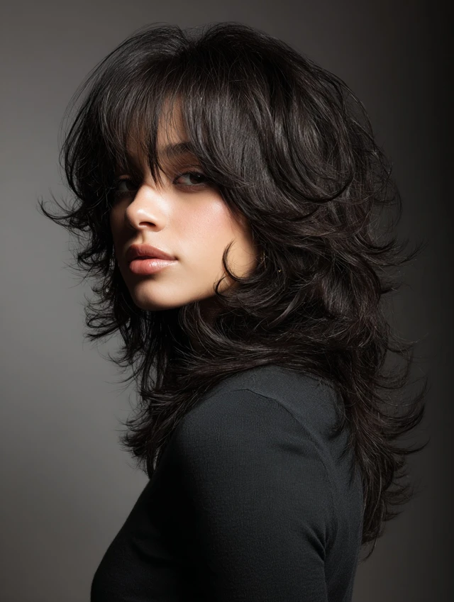 Medium shags work because layered crown sections lift the hair, while feathered sides and ends reduce bulk and add texture. This gives the hair natural volume and dynamic movement.