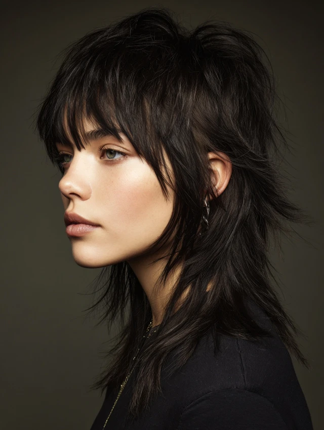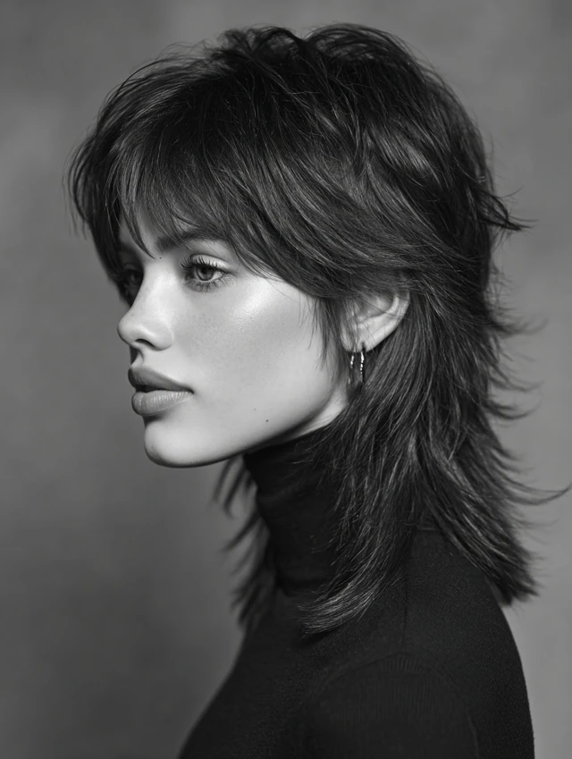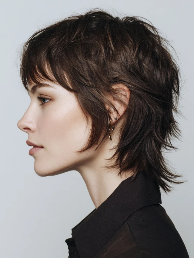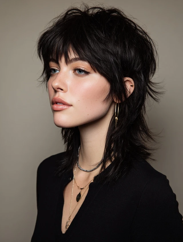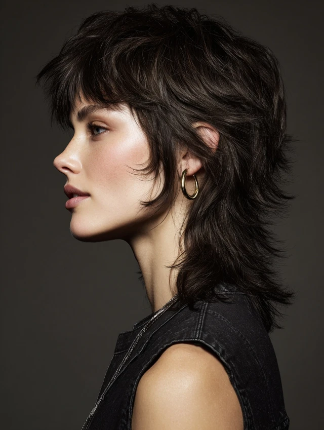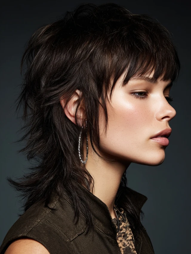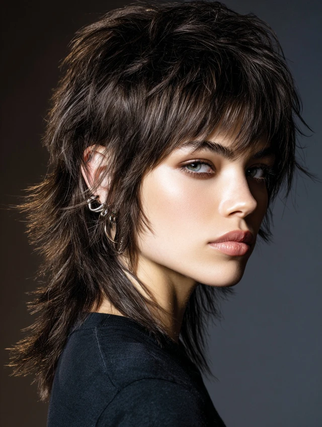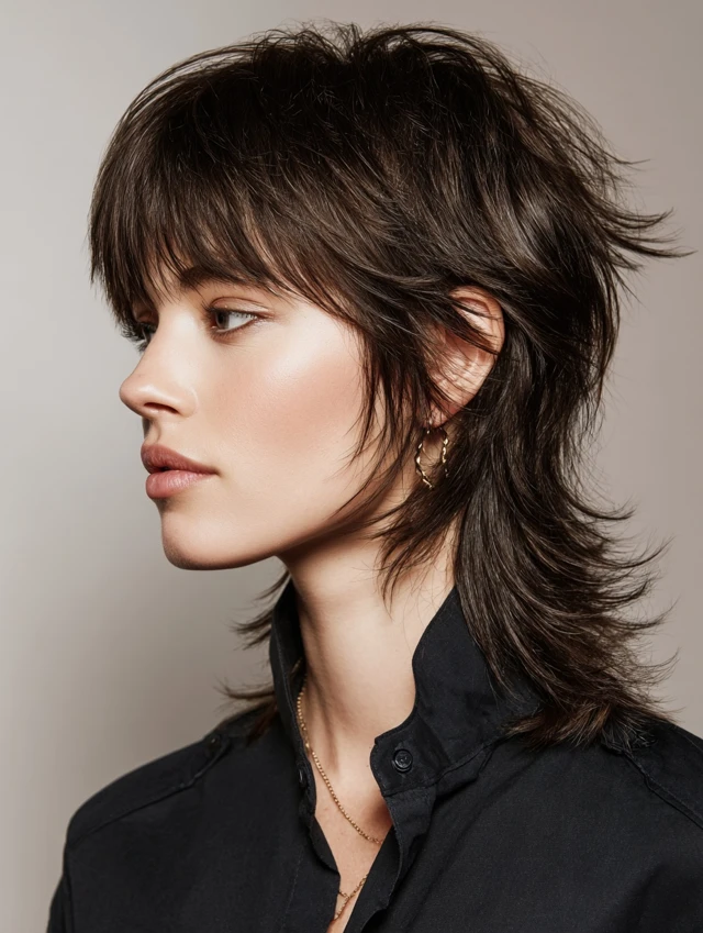 The mullet wolf cut is an edgy, statement-making hairstyle that merges the shaggy layers of a wolf cut with the iconic mullet shape — short at the front and sides, longer at the back. It works on straight, wavy, or slightly curly hair and adds volume, movement, and attitude. Many women choose it because it blends retro vibes with modern texture, making it versatile for casual, creative, or bold professional looks. The layered crown, choppy sides, and longer back create a flattering, face-framing effect for many face shapes.