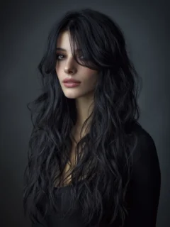 Natural waves soften the choppy crown and long back, adding texture and movement. Suitable for oval, heart, and round faces. Medium-density hair shows waves and layers beautifully.