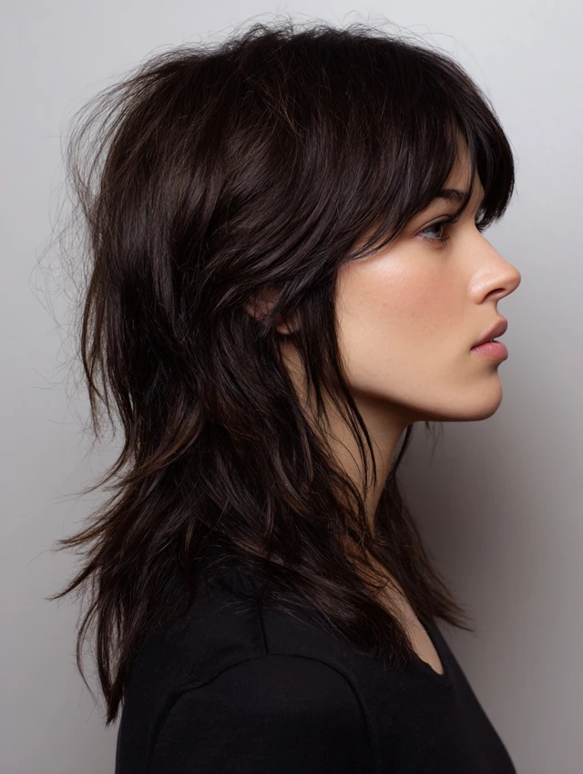 Edgy Mullet Wolf Cut with Choppy Bangs