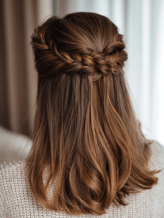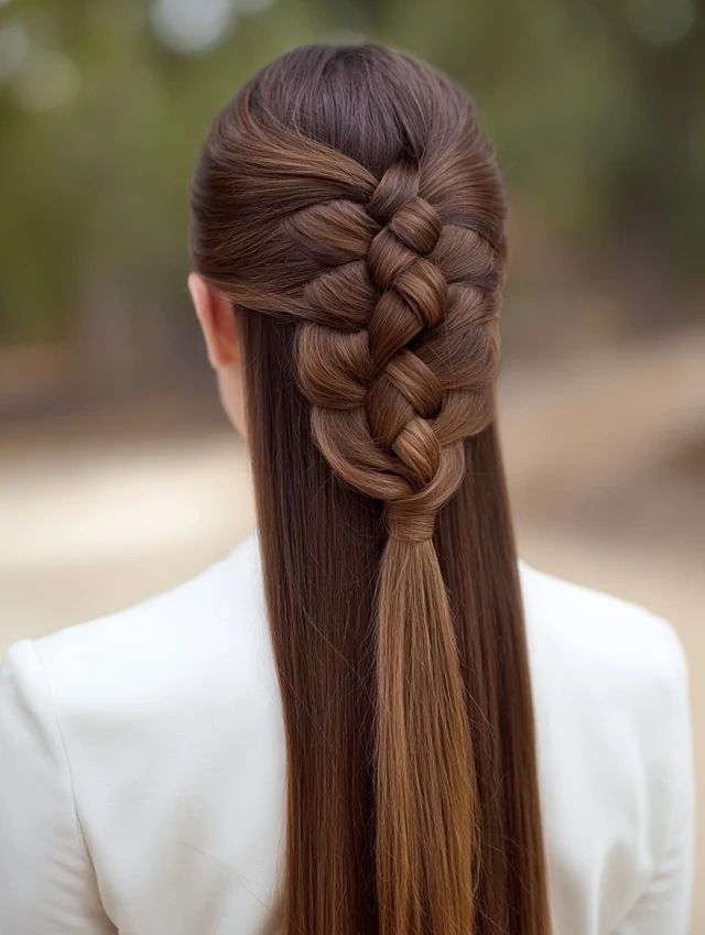 Half-Up Braided Style for Straight Hair