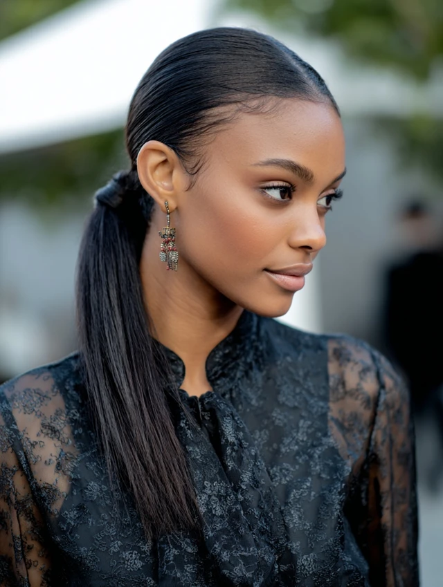 It fits professional settings and formal events easily. Use a soft brush and lightweight serum for smoothness. Avoid tight pulling to prevent tension at the hairline. This style lasts all day and minimizes daily manipulation, making it practical and polished