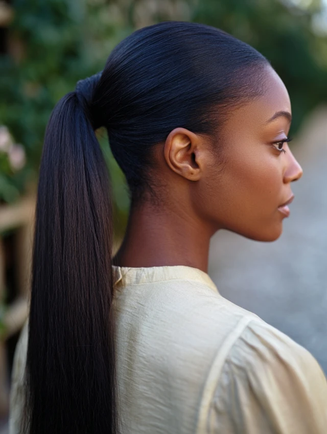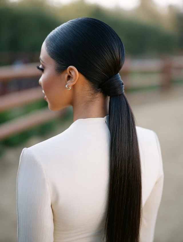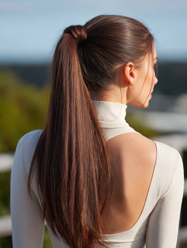 A high loose ponytail can be protective when done correctly. The key is keeping it loose and wrapping a section of hair around the elastic. This hides the band and reduces direct friction. Long straight hair benefits most from this style.