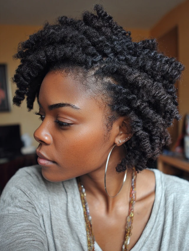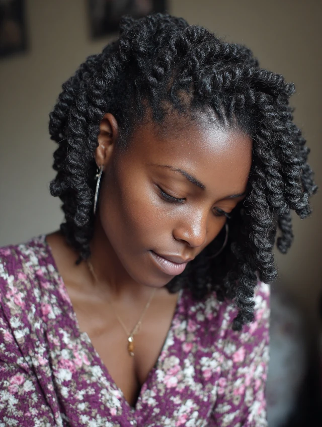 Keep your scalp clean and moisturized. Use lightweight oil to prevent buildup. Avoid heavy products that cause stiffness. Protect twists at night with a satin scarf. Don’t leave the style in too long. Six to eight weeks is usually enough. Proper care keeps your natural hair healthy underneath.