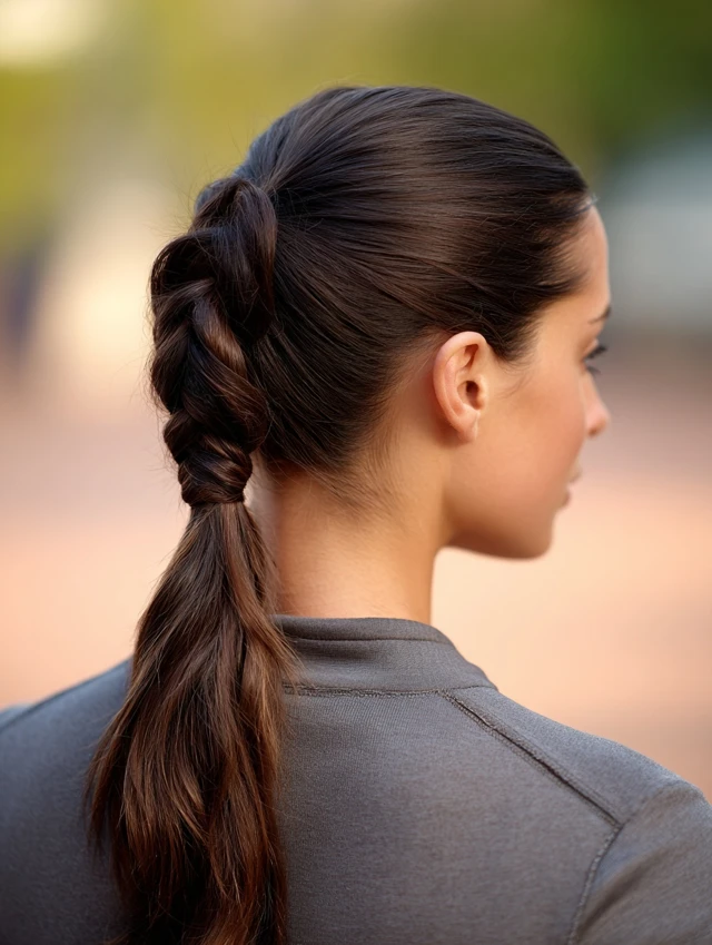 A braided sleek ponytail combines stability and style. The smooth base transitions into a long braid, which reduces tangling and movement. This works especially well for thick or textured hair.