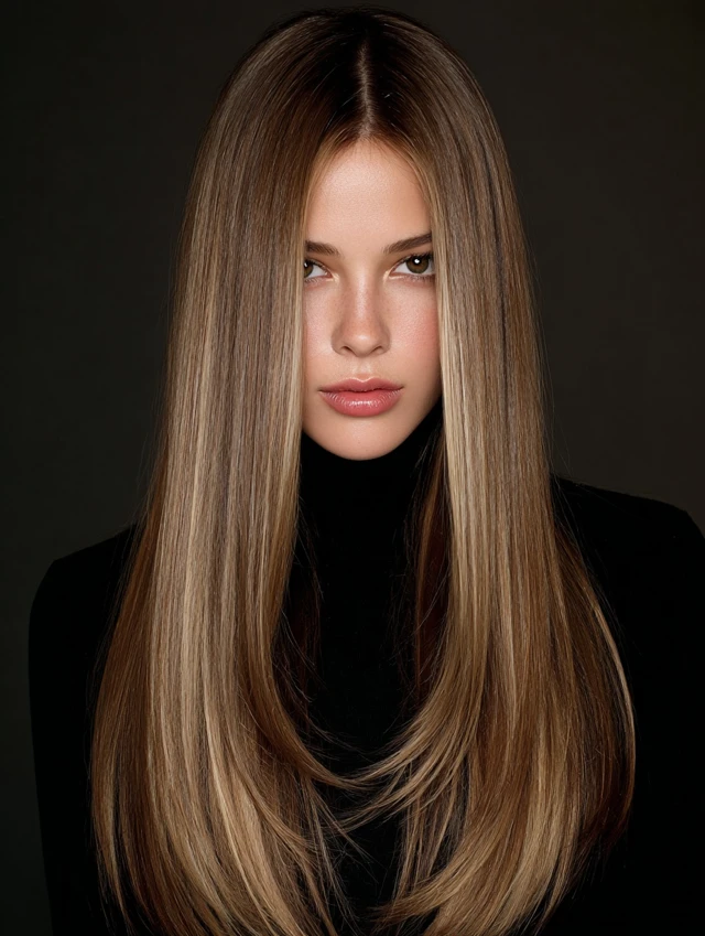 Sleek Middle-Part Straight Hair
