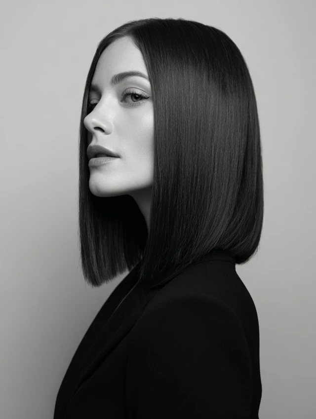 A blunt cut creates a bold, sharp finish. This style flatters oval and heart-shaped faces best. The clean line at the ends adds strength and definition.