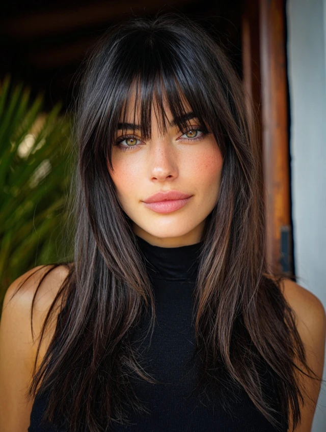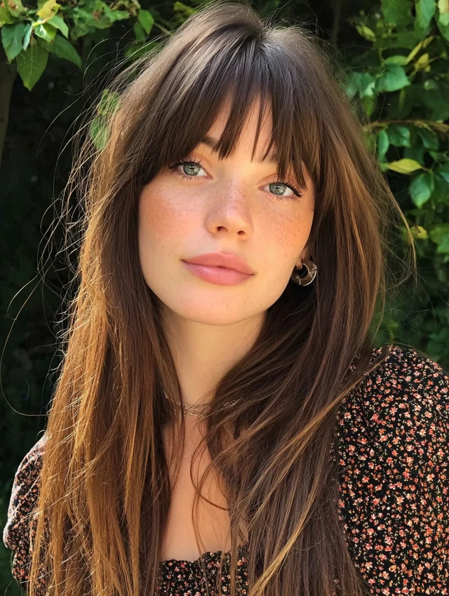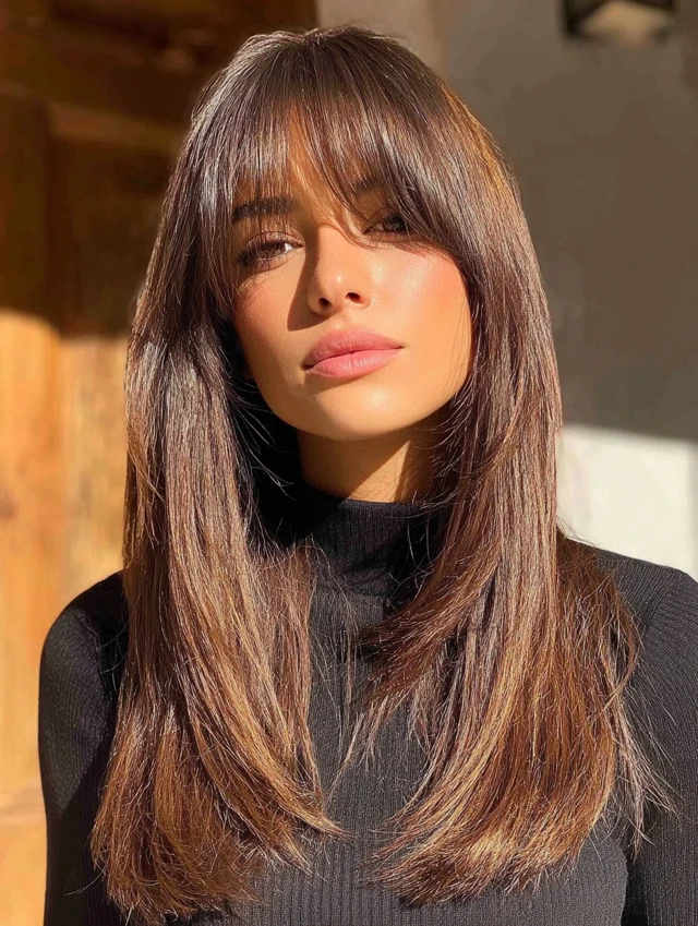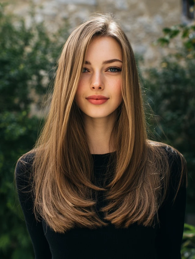 Long layers prevent straight hair from appearing heavy. This style suits square and heart-shaped faces because it softens strong angles. The layers add subtle flow without losing length.