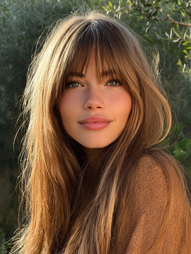 Curtain bangs soften straight hairstyles instantly. They frame the face gently and suit round or square face shapes. The slight curve adds dimension without heavy layering.