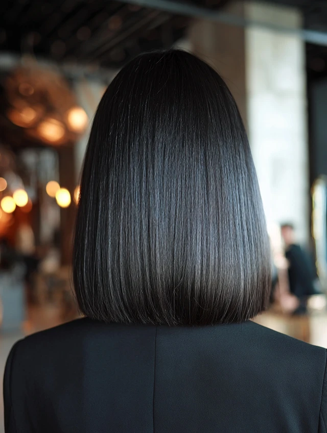 Keep the hair ultra-smooth for maximum impact. Use a fine-tooth comb when flat ironing to maintain precision. This cut works well for fashion-forward looks and minimalist styles.