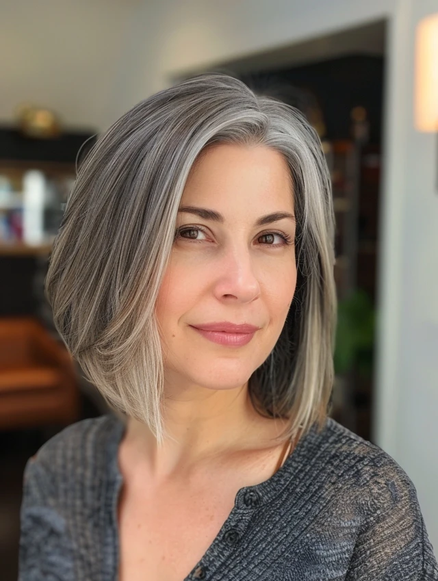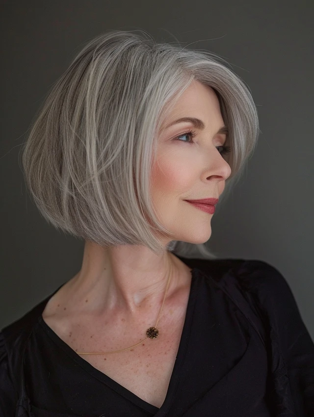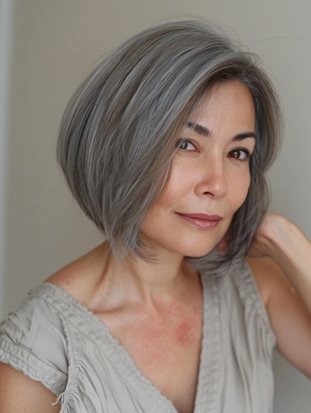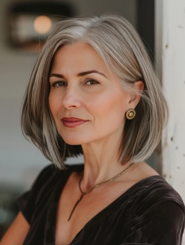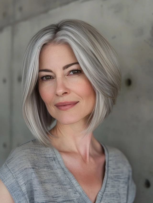 Which gray bob style appeals to you most—sleek blunt, layered, or stacked? Share your thoughts and experiences in the comments to inspire other women embracing gray hair.