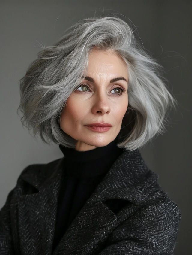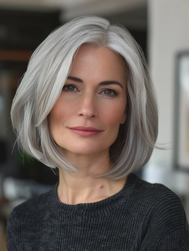 These hairstyles are practical for busy lifestyles. Gray tones allow natural regrowth without harsh contrast, reducing color maintenance. Bobs are easy to style—air drying, soft waves, or a quick blowout all work. They also suit most face shapes, making them versatile and timeless.