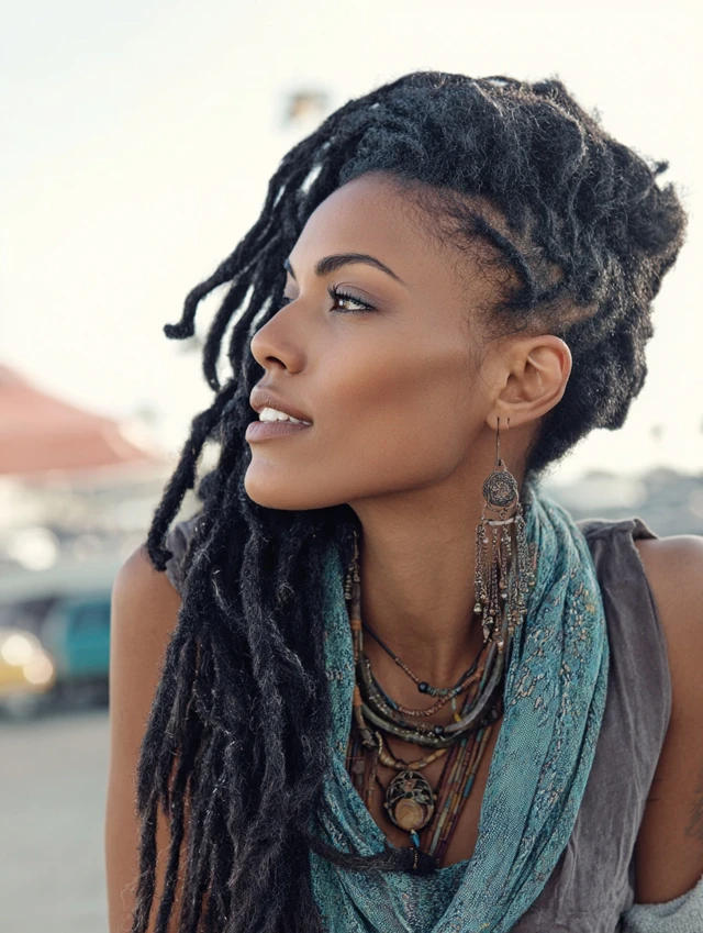 Thin locs allow detailed styling. Because they are smaller, you can part and shape them easily. This flexibility works well for oval, round, and heart-shaped faces. You can adjust placement to balance your features.