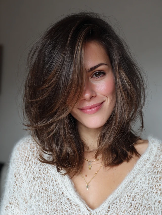 The layered lob adds length without heaviness and suits oval, square, and heart-shaped faces. Layers enhance volume and movement for medium to thick hair. It’s low-maintenance and grows out elegantly, making it perfect for women seeking practicality with style.
