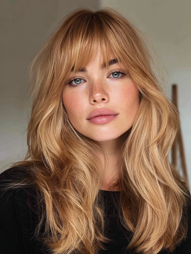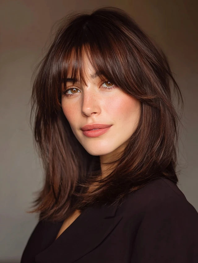 They draw attention to eyes and cheekbones while requiring minimal effort. You can part the bangs in the middle or sweep to the side. This style suits casual, professional, and semi-formal occasions while keeping styling fuss-free.