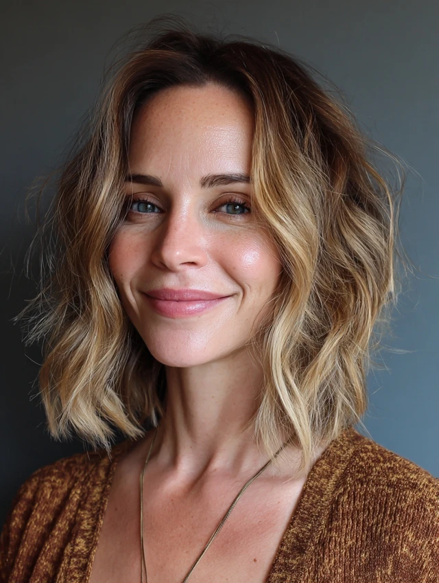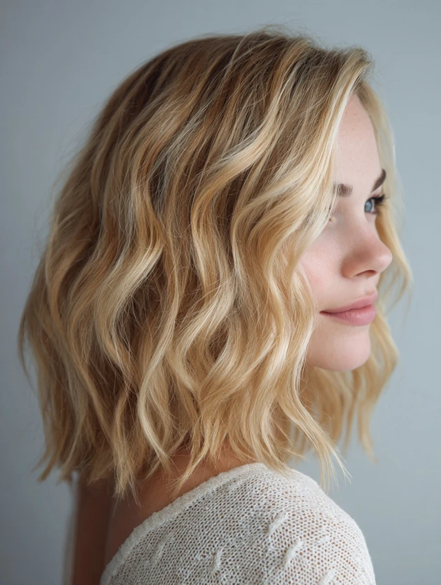 Shoulder-length waves flatter most face shapes by adding softness to angular features and fullness to round ones. Medium to thick hair holds waves naturally, while fine hair can use a light curling cream or sea salt spray. This style suits women who enjoy casual, versatile looks.
