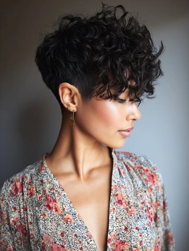 Styling takes minutes using leave-in conditioner or curl cream. The tapered cut enhances shape and volume while remaining manageable. It’s perfect for casual, professional, or formal settings, combining effortless beauty and modern trends.