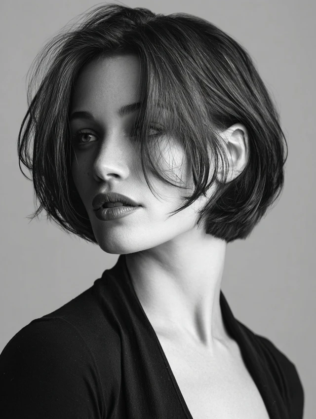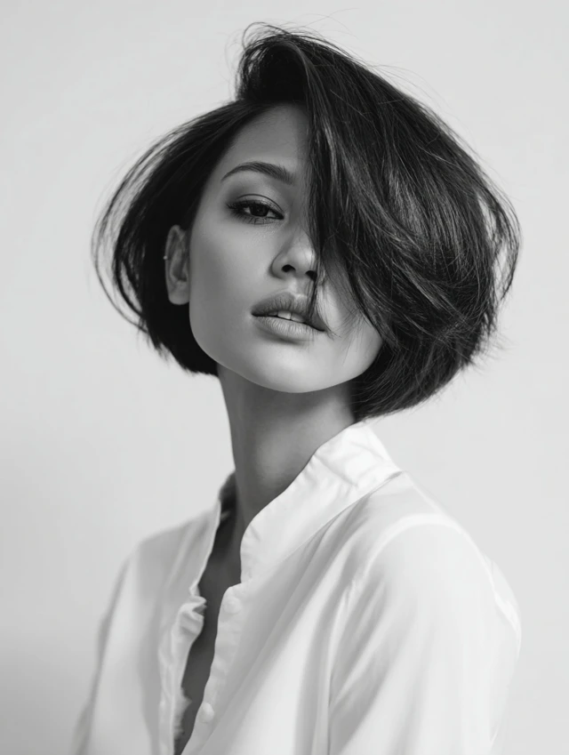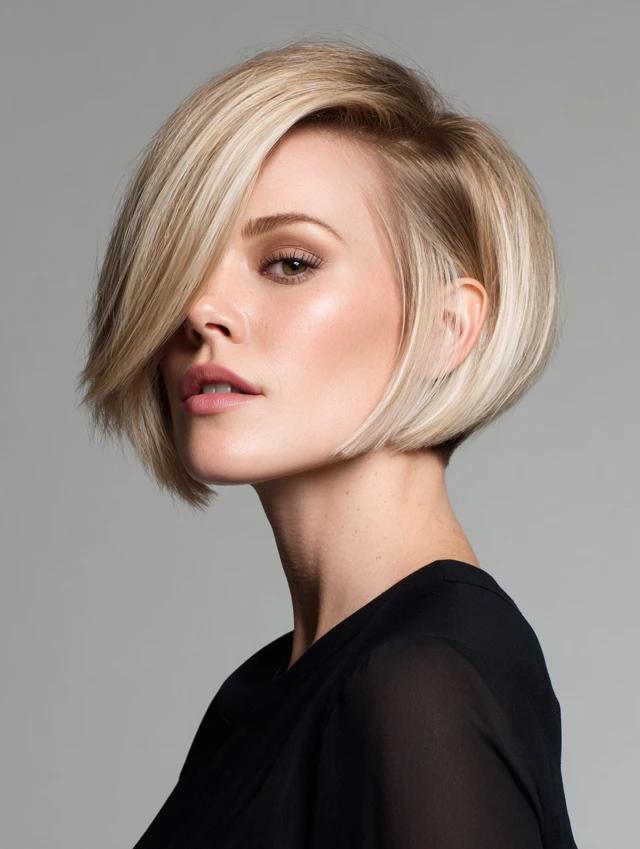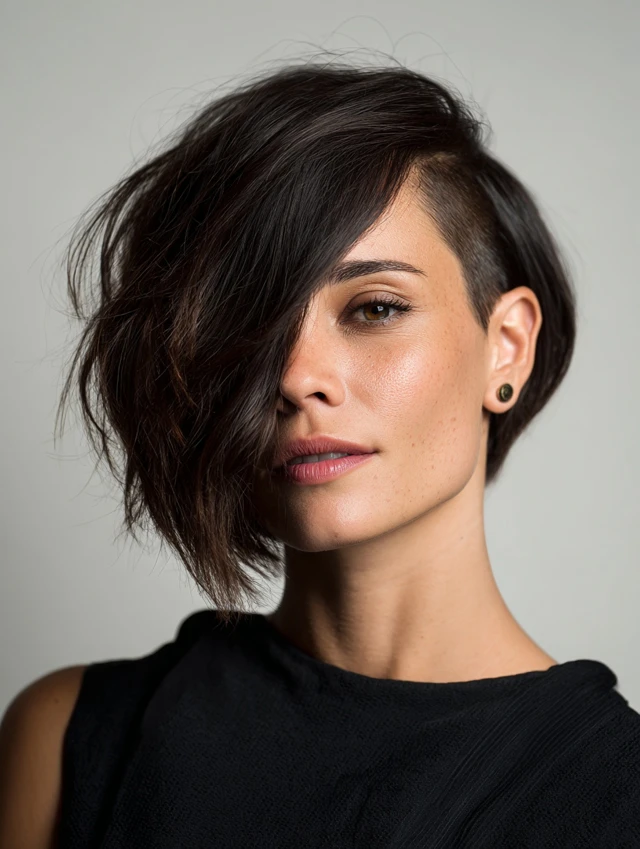 A bob with a side part and undercut gives asymmetry and modern style. Works for oval, heart, and square faces and straight or wavy hair.