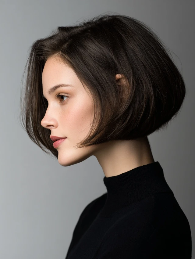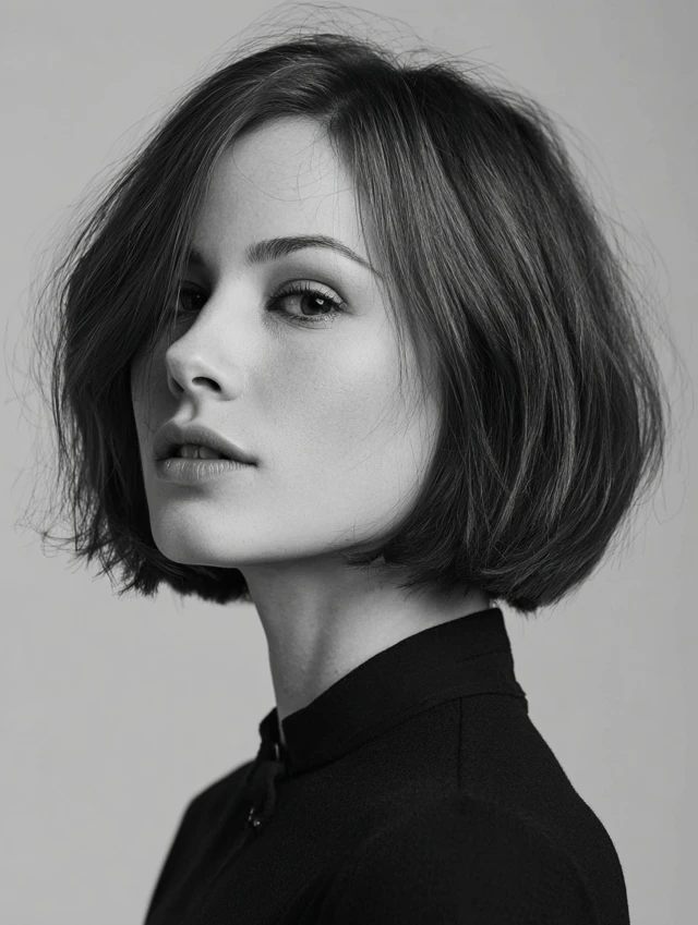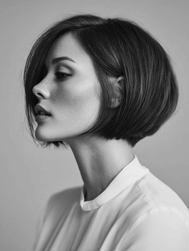 A chin-length or slightly longer bob with an undercut at the nape for subtle edge. Works on oval, heart, and square faces and straight or slightly wavy hair.