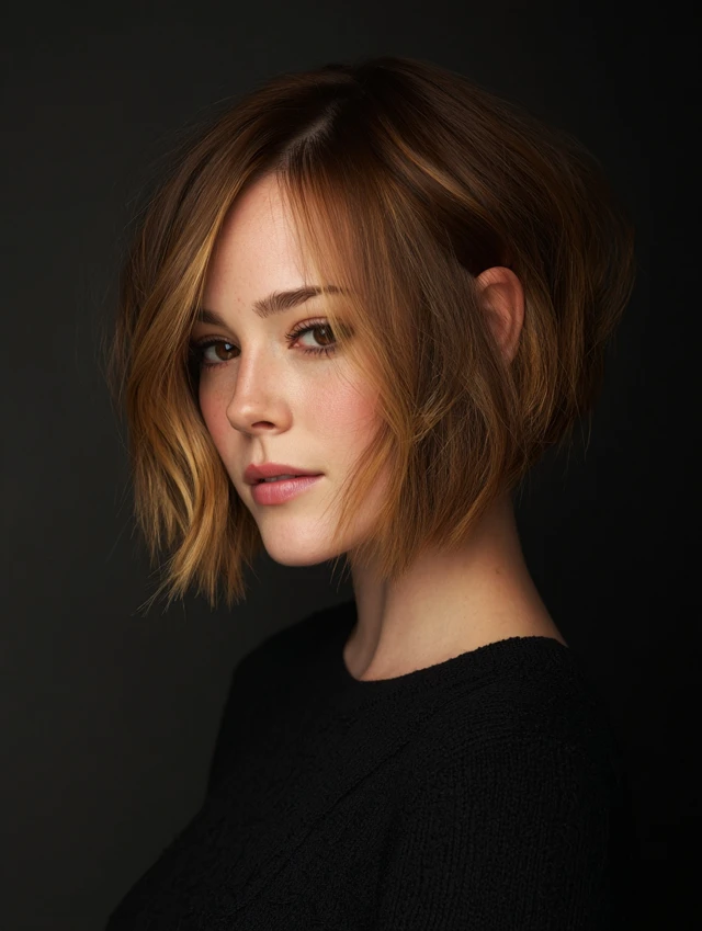 A bob with soft waves and a hidden undercut adds movement and texture. Works on oval, heart, and round faces and medium-density hair.